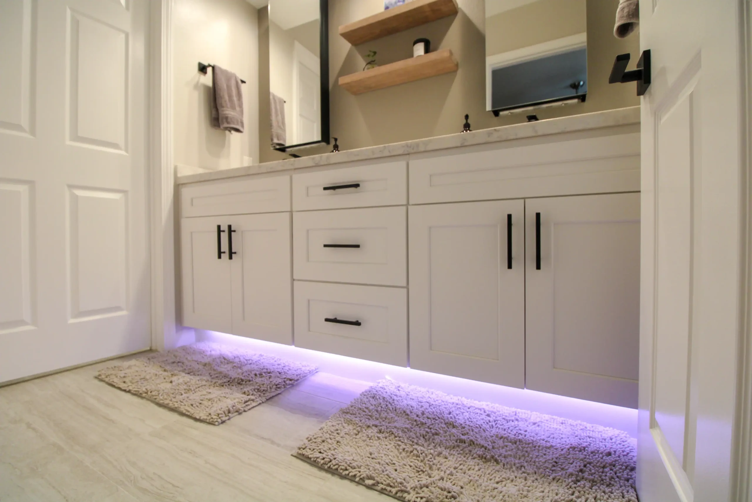 Every element — from lighting to tile selection — was chosen to balance style, practicality, and modern appeal. The end result? Two distinct yet cohesive bathrooms that elevate the home’s overall comfort and aesthetic.